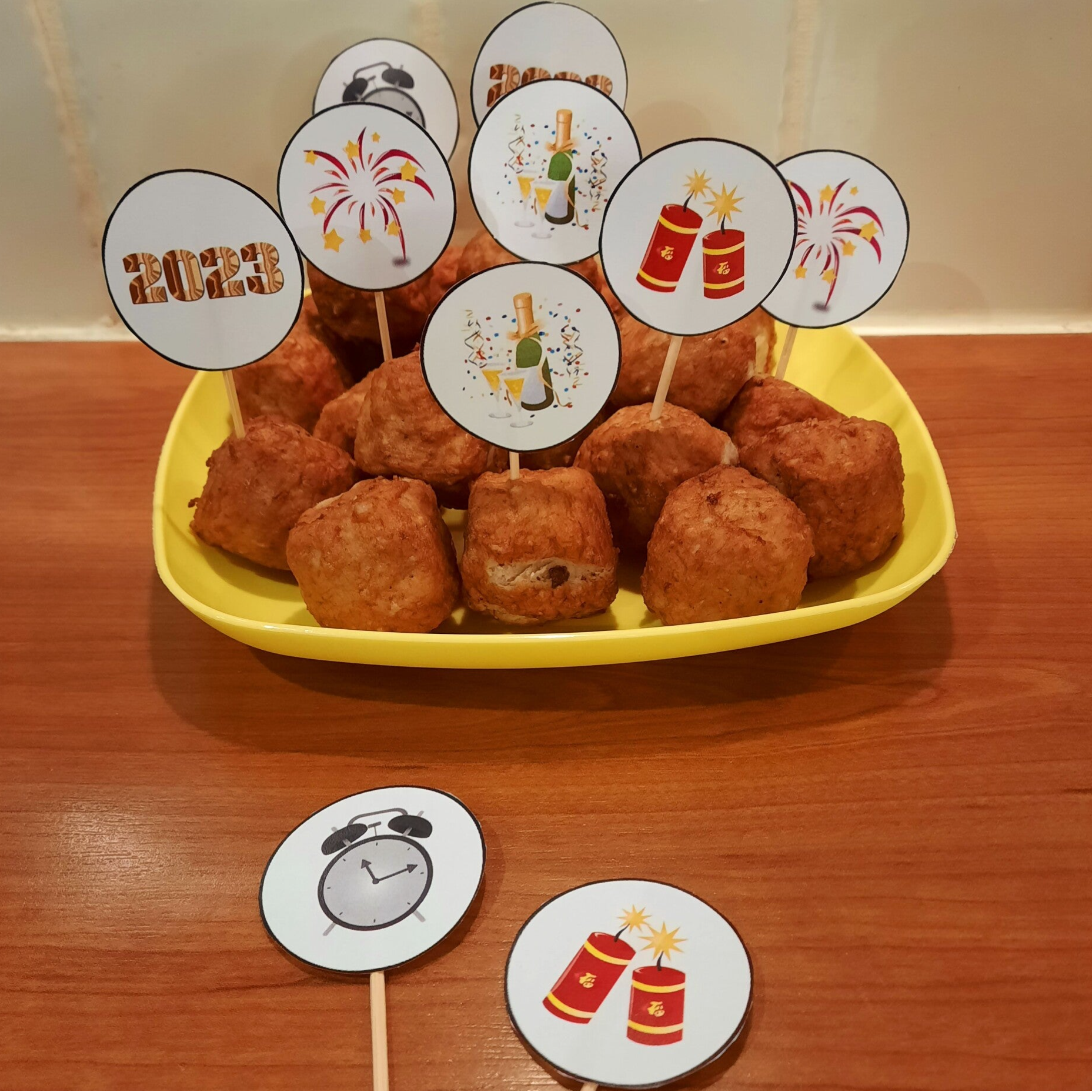 Maak je borrelplank of je schaal met oliebollen extra feestelijk met vrolijke prikkers!