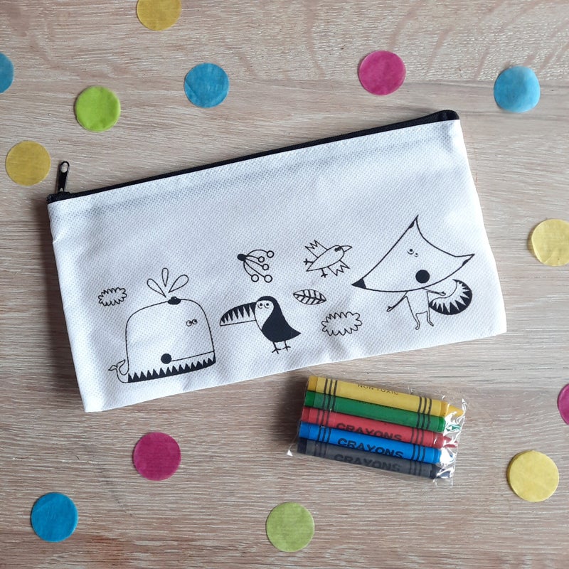 Tip: Gebruik de dierentas meteen als uitdeeltasje voor het kinderfeestje. Voeg wat lekkers en/of een uitdeelcadeautje toe en geef de stiften hierin mee naar huis.